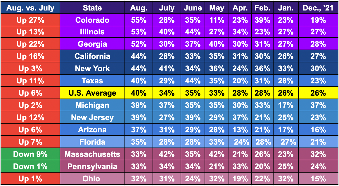 That tells us a lot. Rent delinquency rates in July were, for the most part, disturbing. But for many states, those rates only escalated in August.