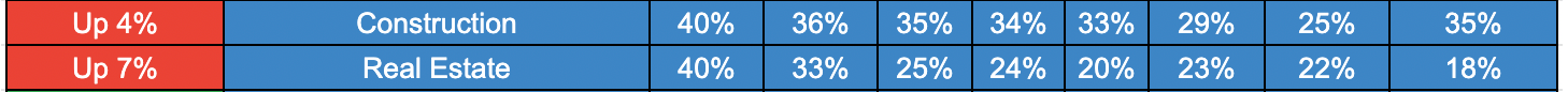 Now, 40% of construction firms can't pay the rent (up 4% from July and up 7% from April).