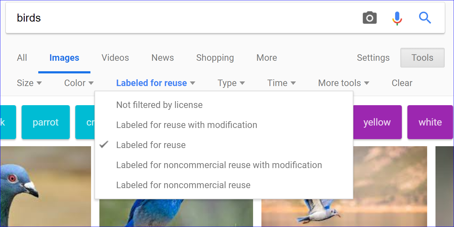 You can also do a Google search for images using "Labeled for reuse" by clicking on "Tools" and the menu tabs will appear.